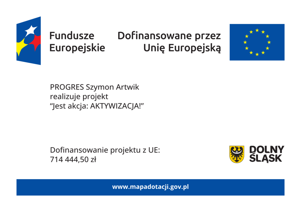 Celem głównym projektu „Jest akcja: AKTYWIZACJA!” realizowanego przez PROGRES Szymon Artwik, jest aktywizacja zawodowa rozumiana jako uzyskanie zatrudniania lub poprawę warunków posiadanego już zatrudnienia u 80 osób z obszaru województwa dolnośląskiego należących do